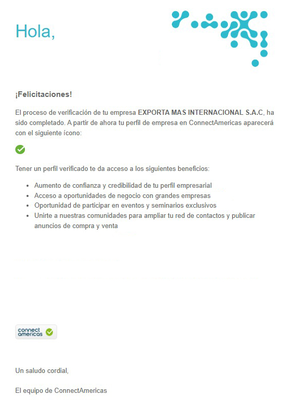 Nuestras empresas han obtenido la verificación de ConnectAmericas lo que nos llena de orgullo